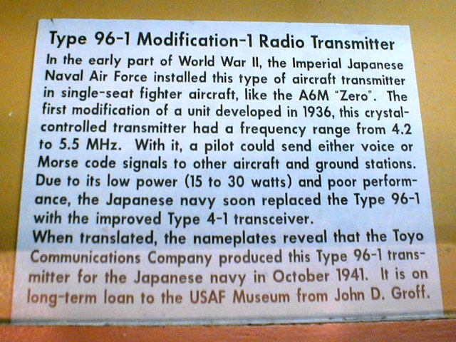 Close-Up of the USAF Museum Description for the Type 96-1 Transmitter